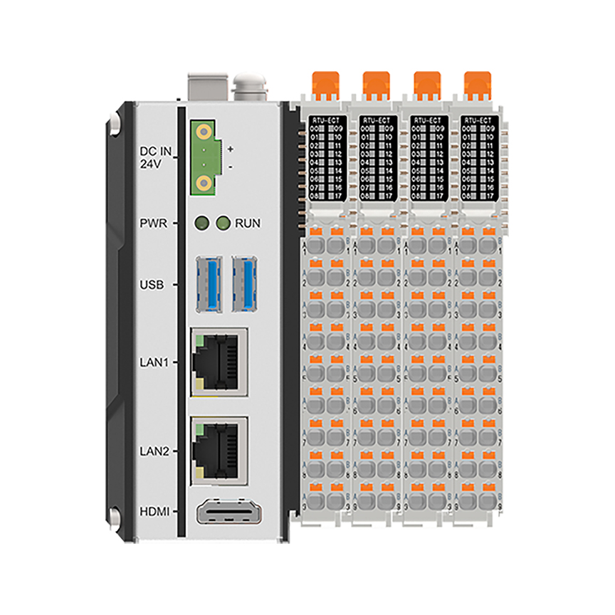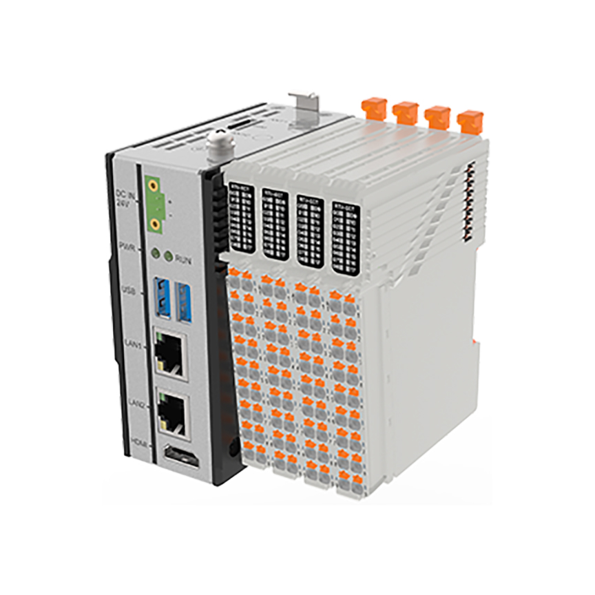 本產品采用高性能8核心RK3588處理器,4個ARM Cortex-A76+4個ARM Cortex-A55,主頻高達2.4GHz。支持1路高實時千兆EtherCAT,1路千兆Eehernet以太網;支持2路USB 3.0 type-A,1路HDMI 2.1顯示;具有強大擴展功能,采用彈片觸點式接線端子,支持16個插片式總線I/O模塊(DI/DO、AI/AO、編碼器/脈沖等),最大支持256個I/O信息點數。支持Linux等多種操作系統,可以適配CODESYS等軟件。體積小巧緊湊,支持導軌卡扣安裝。